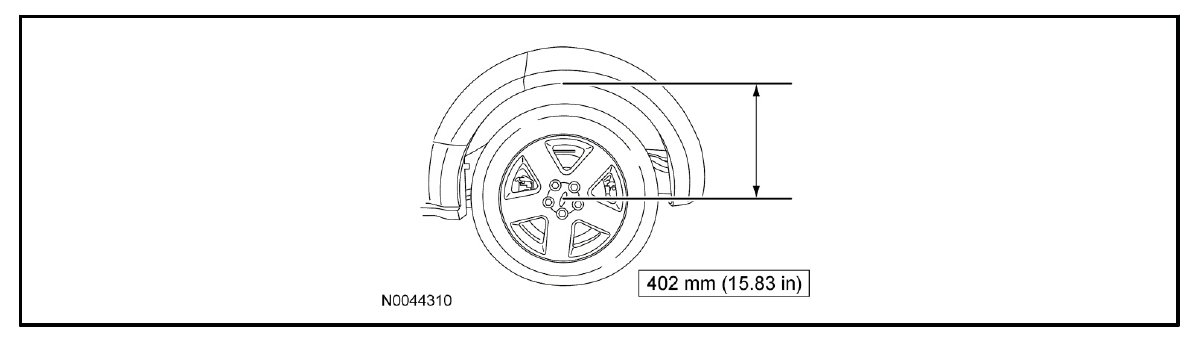 11. Before tightening any suspension busing fasteners, the suspension must be at 402 mm (15.826 in) between the center of the hub and the lip of the fender. This will prevent incorrect clamp load and bushing damage.