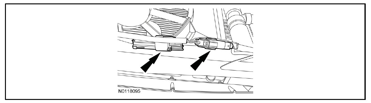 15. Disconnect the 2 front EPAS in-line electrical connectors and the 4 wiring retainers.