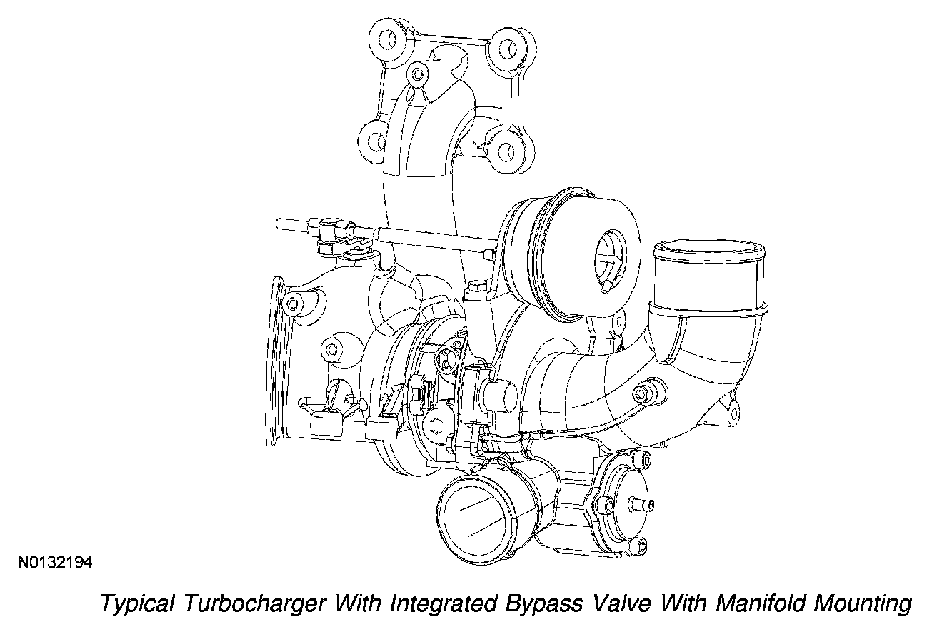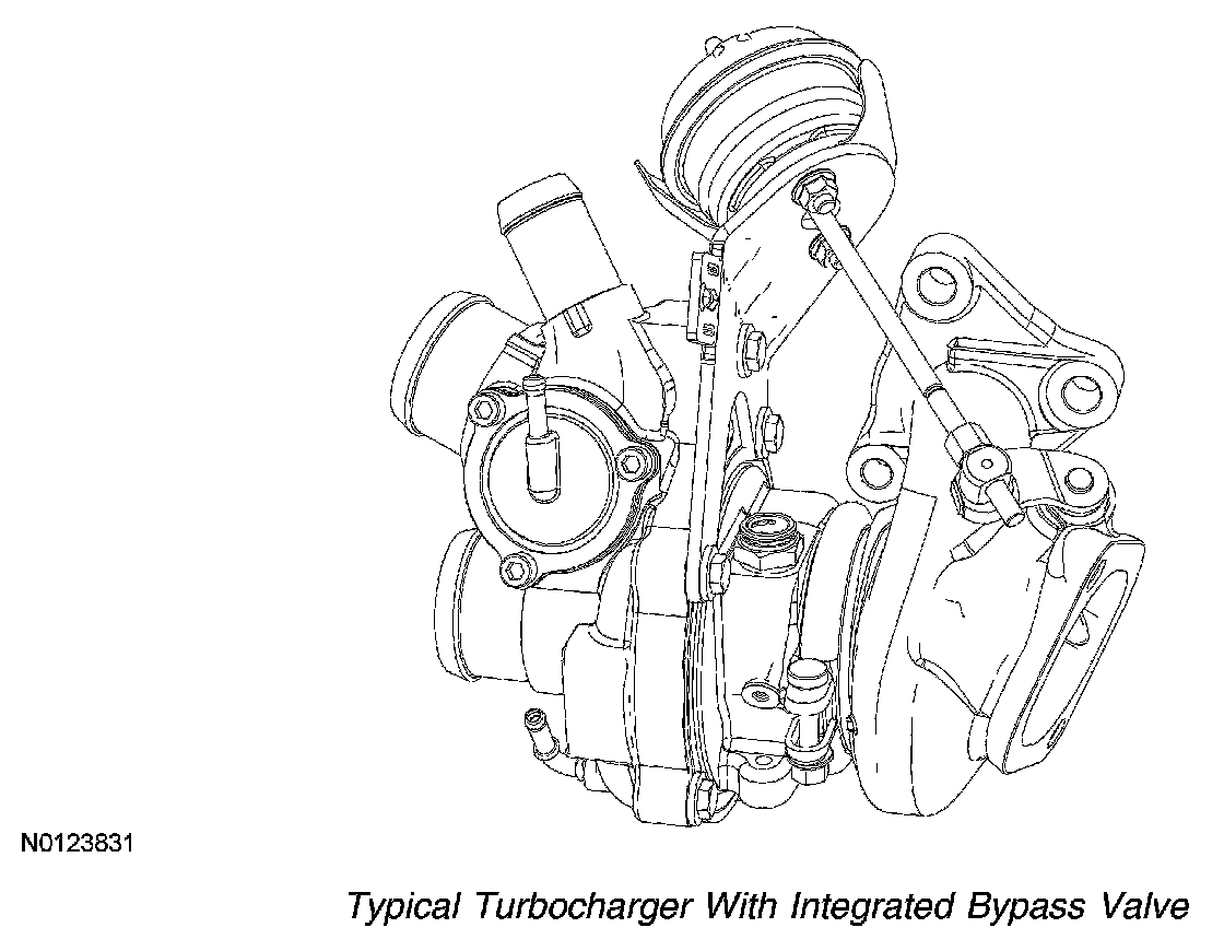 The wastegate vacuum sensor is an absolute pressure sensor that provides the PCM an analog voltage output that is proportional to the applied vacuum. The wastegate vacuum sensor is located near the turbocharger and the turbocharger wastegate regulating valve solenoid. The wastegate vacuum sensor measures the vacuum supplied by the turbocharger wastegate regulating valve solenoid to the wastegate actuator. The PCM uses the information from the wastegate vacuum sensor to determine the amount of vacuum being applied to the wastegate actuator.