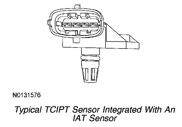 The TCIPT sensor is located in the intake air tube between the air filter assembly and the turbocharger. The TCIPT sensor measures the turbocharger intake pressure and temperature. The PCM uses the information from the TCIPT sensor to determine if the airflow to the turbocharger is being restricted by a clogged air filter or other debris. The TCIPT sensor is integrated with an IAT sensor.