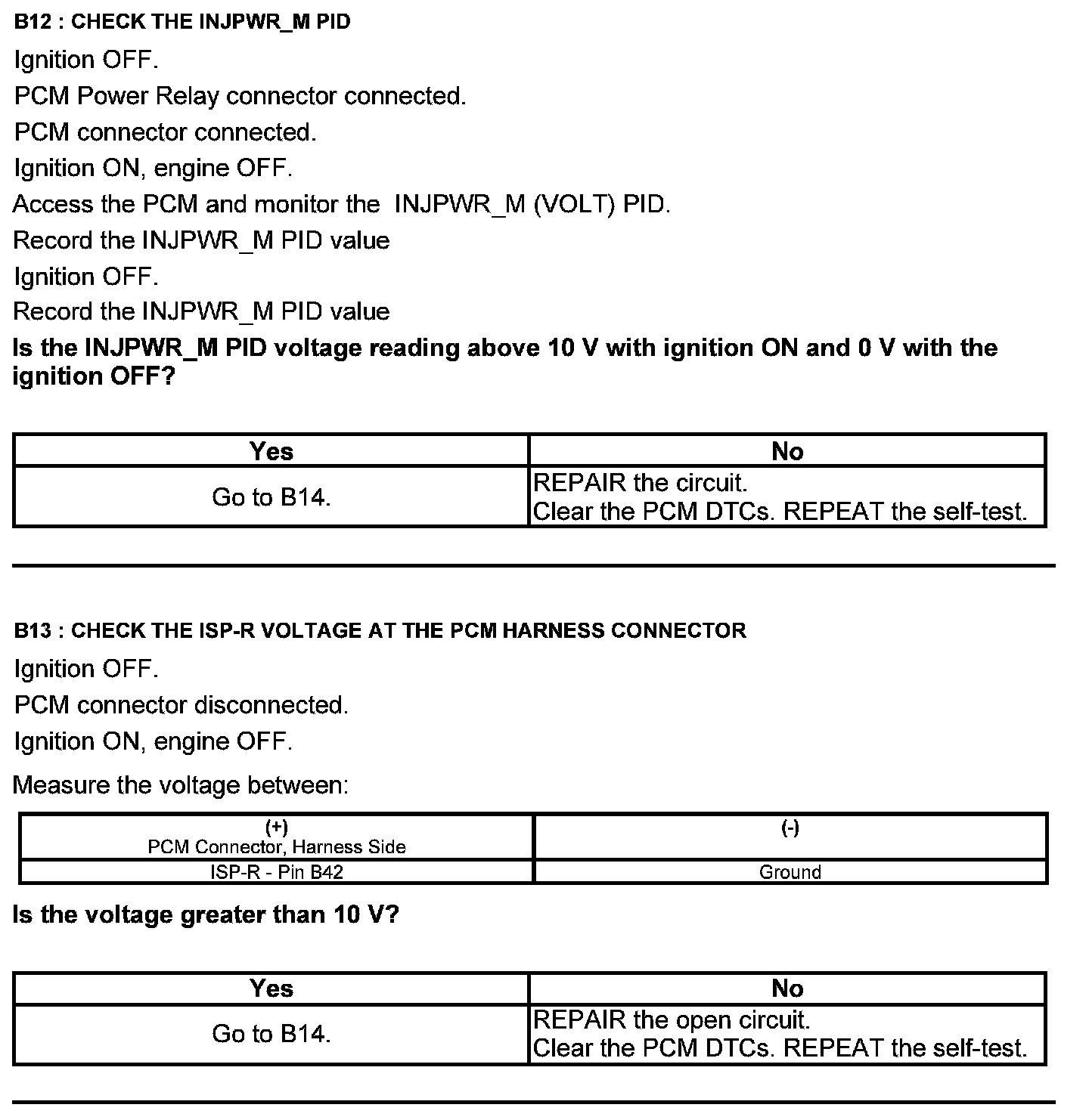 Home >> Ford >> 2012 >> Fusion FWD L4-2.5L >> Repair and Diagnosis >> Powertrain Management >> Computers and Control Systems >> Testing and Inspection >> Pinpoint Tests >> Test B: Powertrain Control Module (PCM) Power Relay >> Manual Transmission