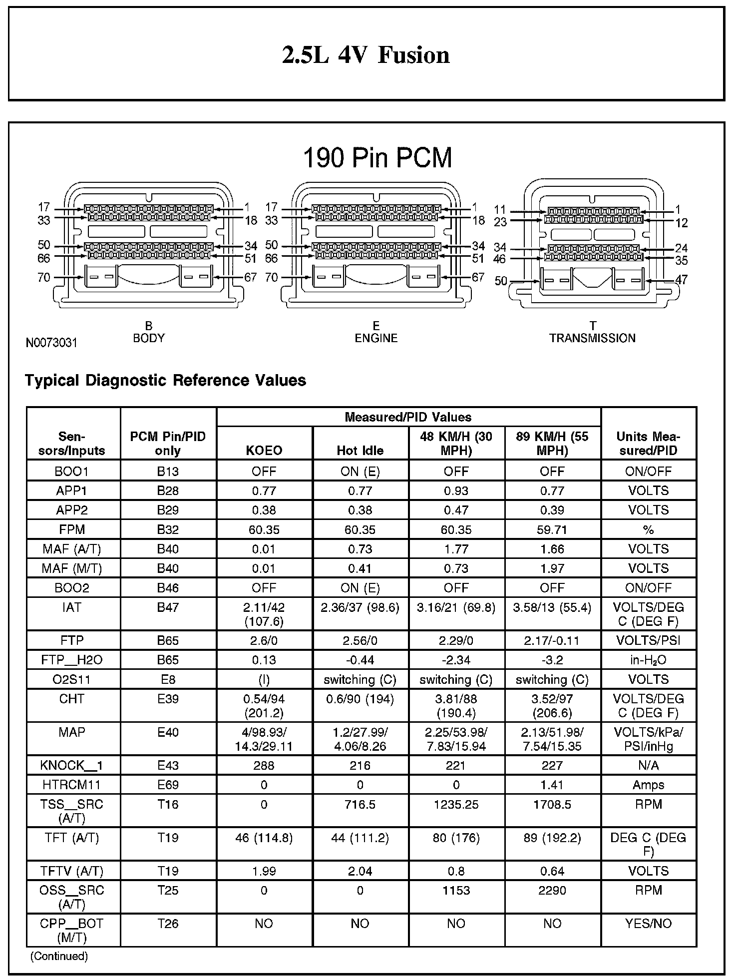 Home >> Ford >> 2012 >> Fusion FWD L4-2.5L >> Repair and Diagnosis >> Powertrain Management >> Computers and Control Systems >> Testing and Inspection >> Scan Tool Testing and Procedures >> Typical Diagnostic Reference Values
