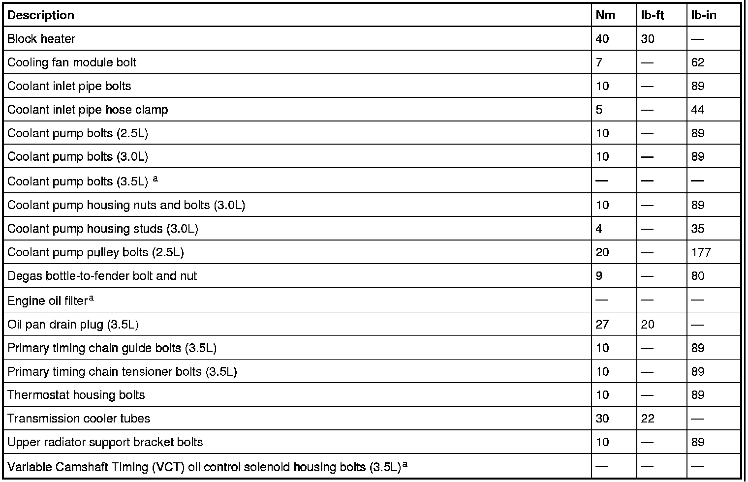 Torque Specifications