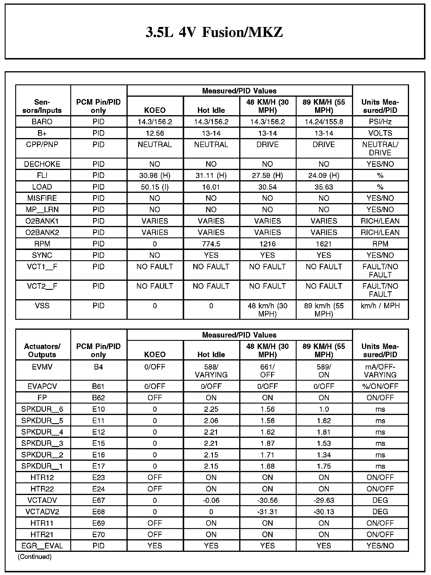Home >> Ford >> 2012 >> Fusion FWD V6-3.5L >> Repair and Diagnosis >> Powertrain Management >> Computers and Control Systems >> Testing and Inspection >> Scan Tool Testing and Procedures >> Typical Diagnostic Reference Values