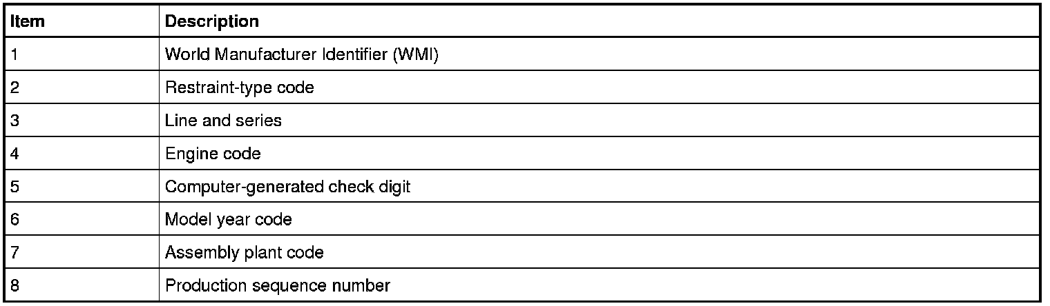 The eighth VIN (Vehicle Identification Number) position is the engine displacement and number of cylinders code.