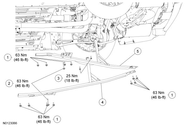 3. Tighten the 6 rear support brace bolts (center-to-frame) to 63 Nm (46 lb-ft).