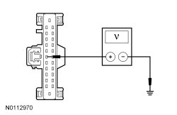 - Measure the voltage between the BCM-B (Body Control Module B) C4368A-7, circuit CBP35 (YE/GY), harness side and ground.