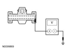 - Measure the voltage between the HVAC module C294A-1, circuit SBP15 (WH/RD), harness side and ground.