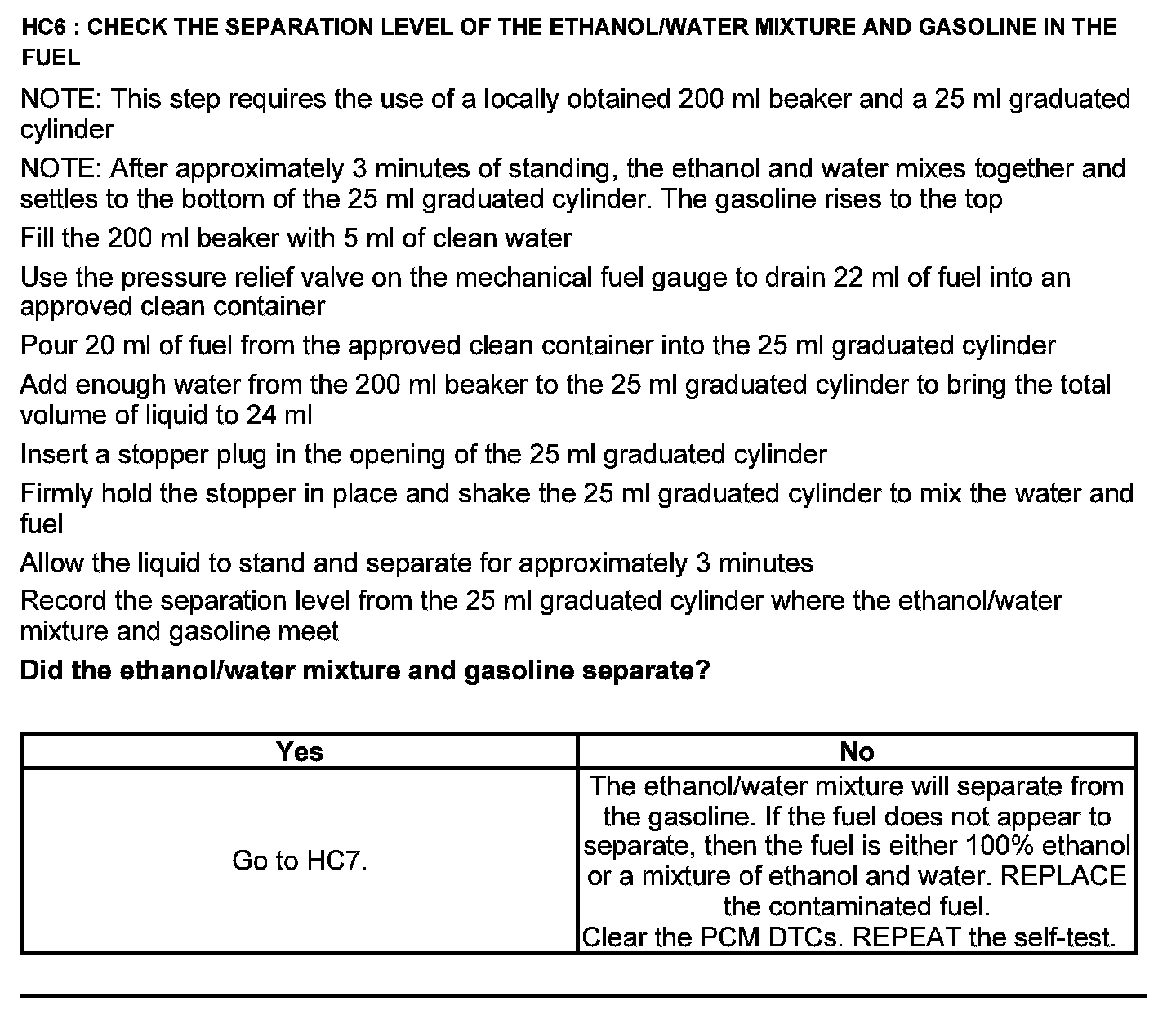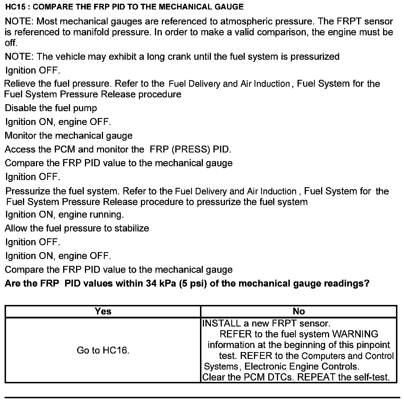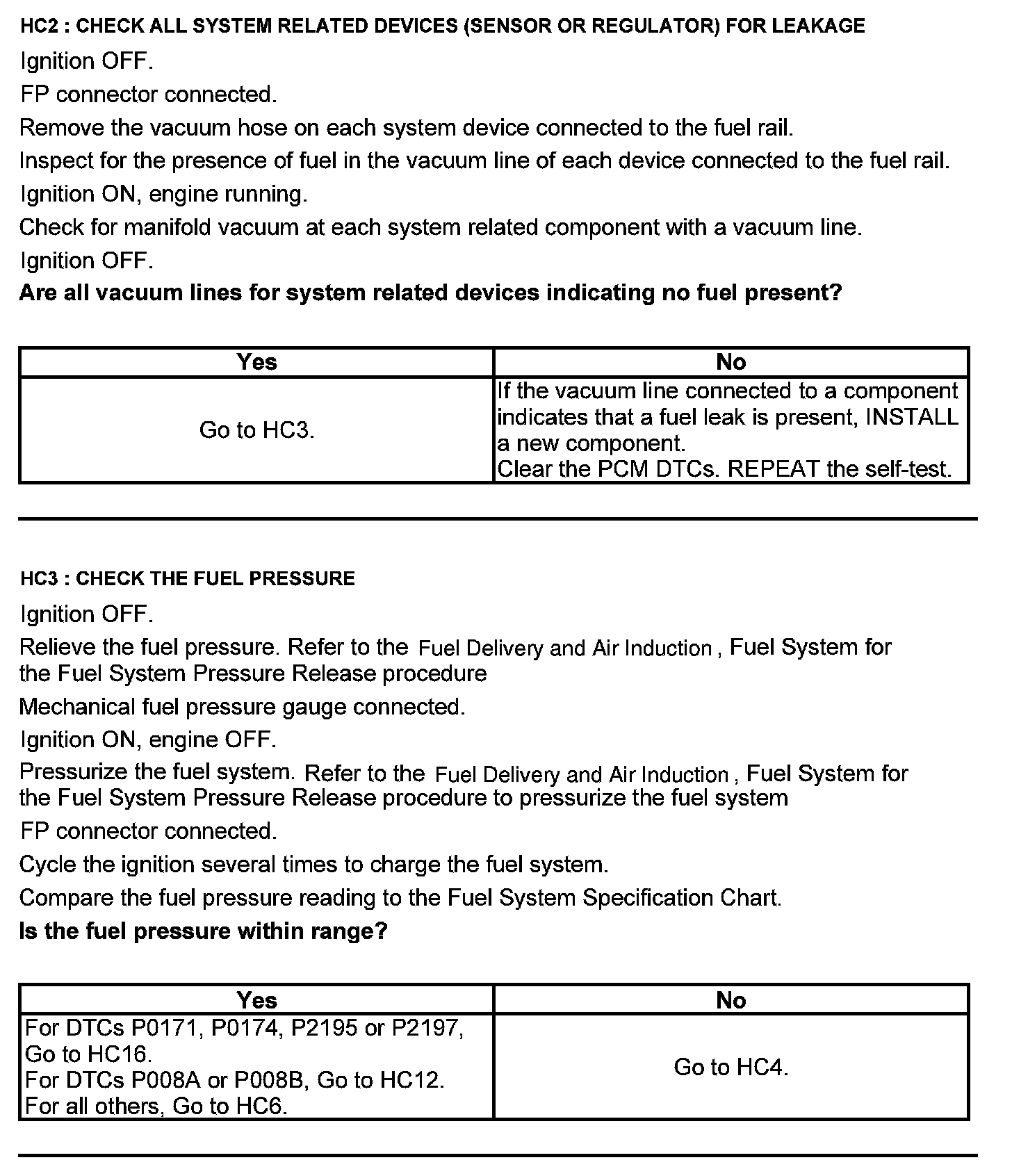 Test HC: Fuel Delivery System