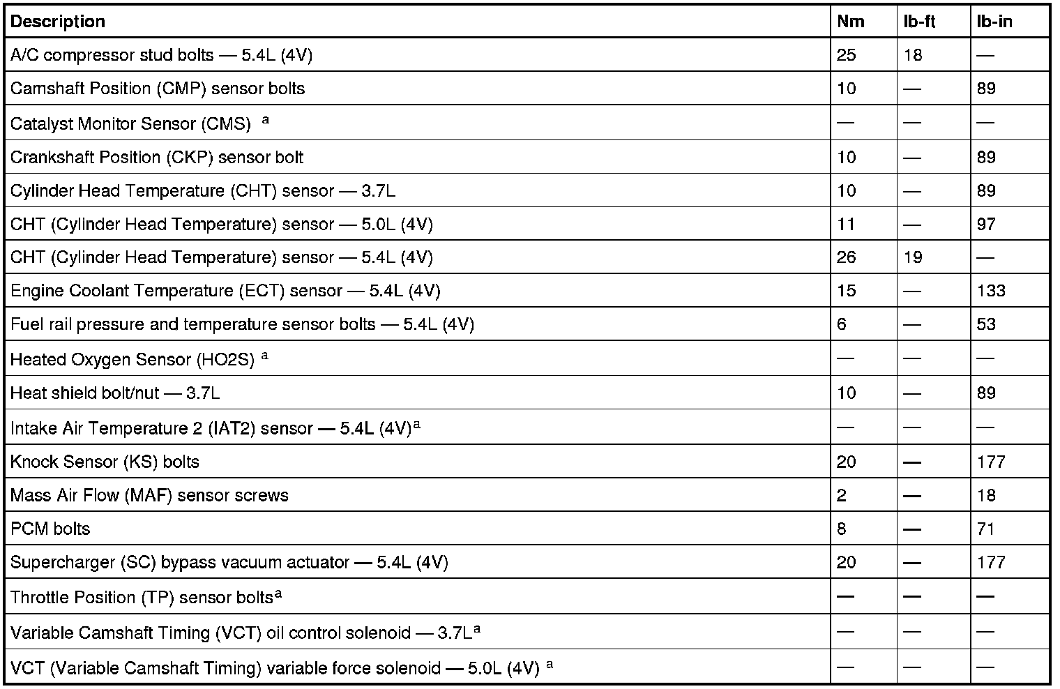Torque Specifications