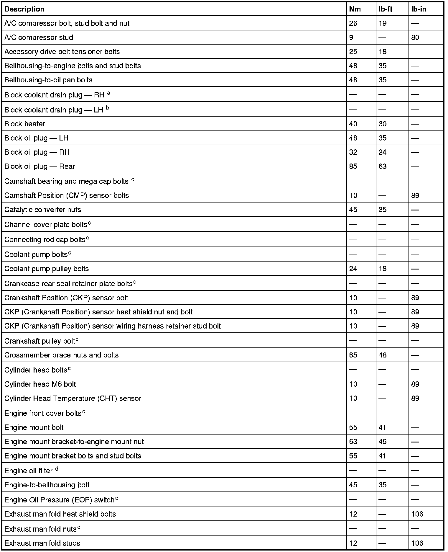 Torque Specifications