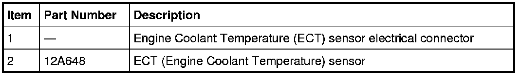 NOTE: Drain the cooling system prior to removing the Engine Coolant Temperature (ECT) sensor. For additional information, refer to Cooling System &/or Engine Block Heater.