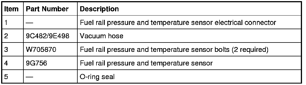 NOTE: Release the fuel system pressure prior to removing the fuel rail pressure and temperature sensor.