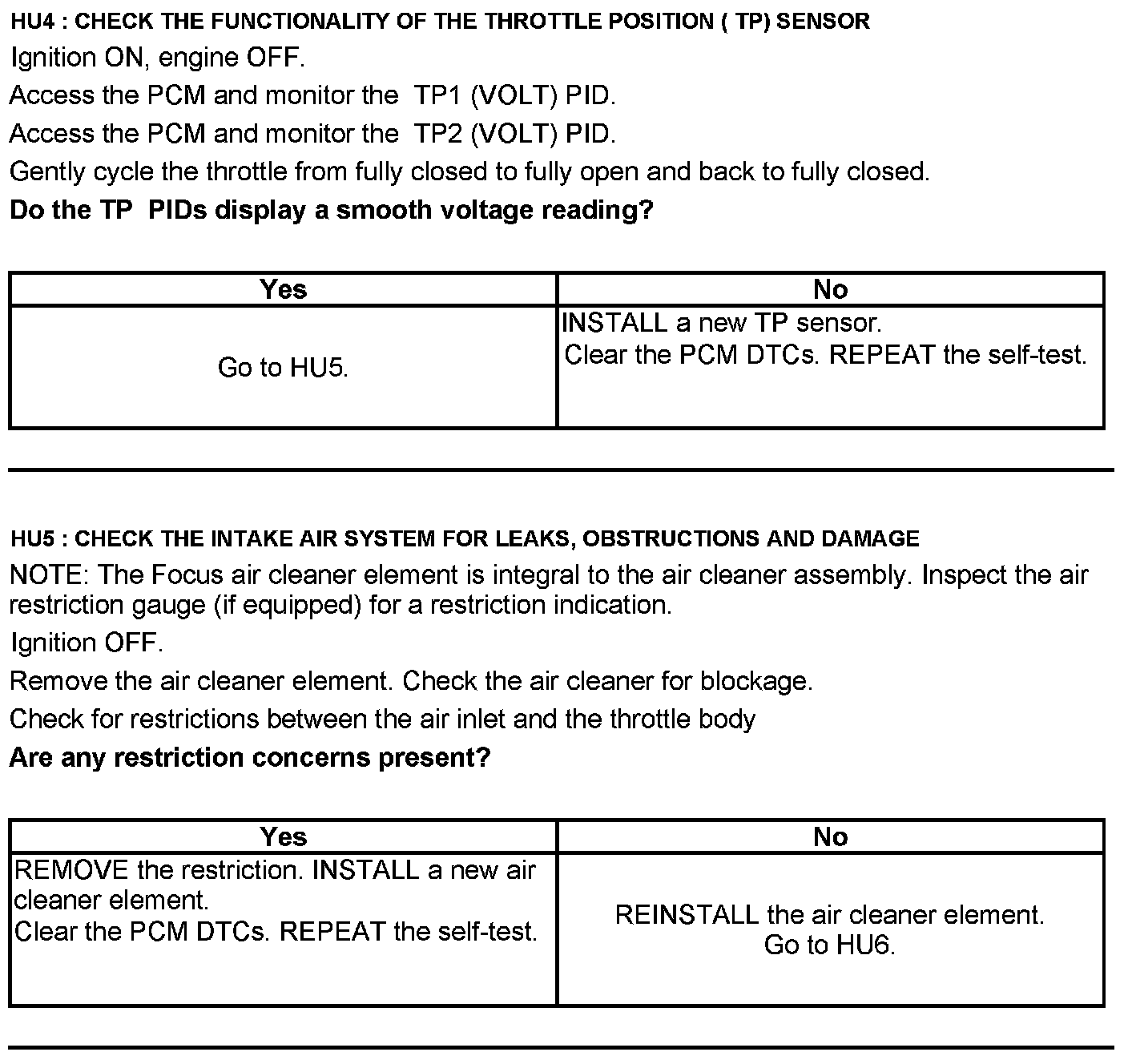 Test HU: Intake Air Systems