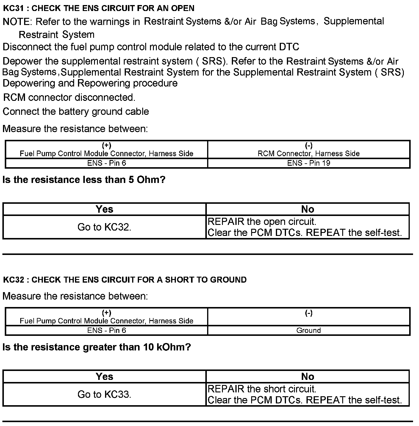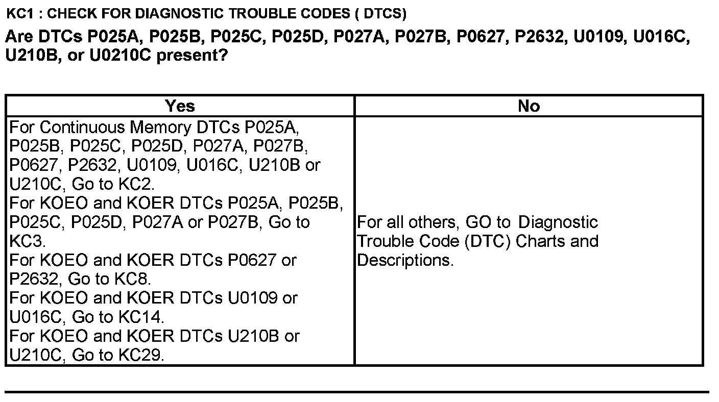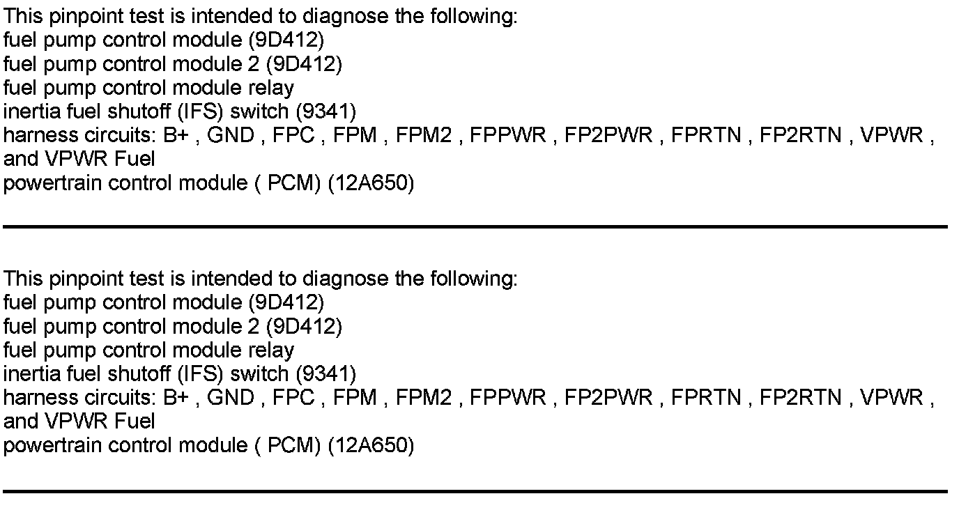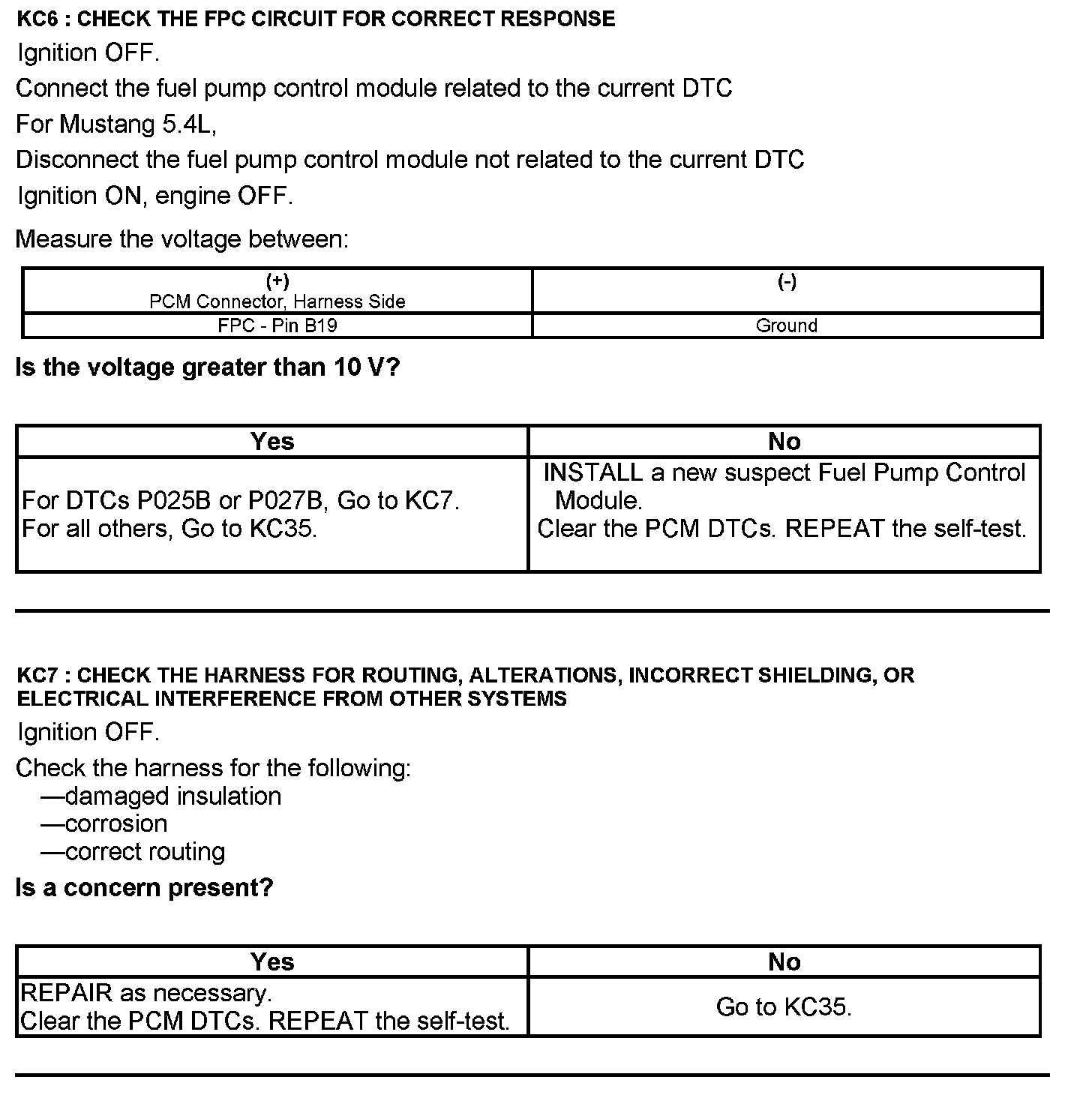 Home >> Ford >> 2012 >> Mustang V8-5.4L SC >> Repair and Diagnosis >> Powertrain Management >> Computers and Control Systems >> Testing and Inspection >> Pinpoint Tests >> Test KC: Fuel Pump Control Module