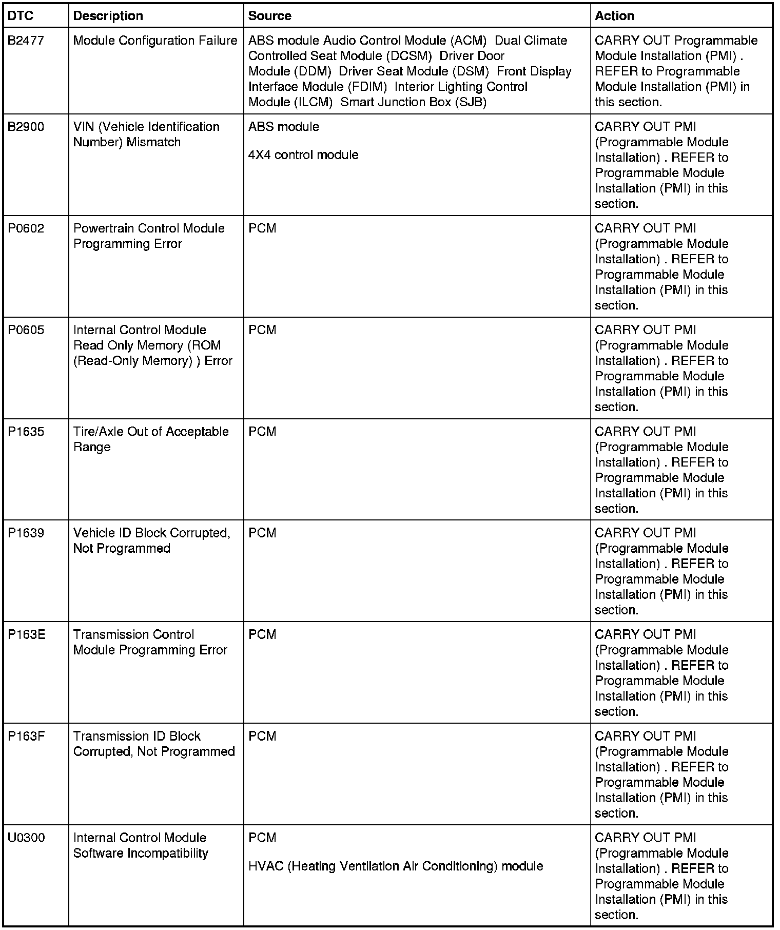 NOTE: Some modules on this vehicle utilize a 5-character DTC followed by a 2-character failure-type code. The failure-type code provides information about specific fault conditions such as opens, or shorts to ground. Continuous Memory DTCs have an additional 2-character DTC status code suffix to assist in determining DTC history.