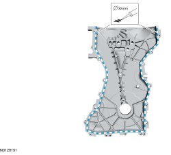 In the Illustration 4 example, service action symbols are shown as used to direct the application of sealer, lubricant, weight, tape or cleaning detergent to a component. In this example a bead diameter of "xx" millimeters is prescribed. The blue and white dashes indicate where the material is applied.