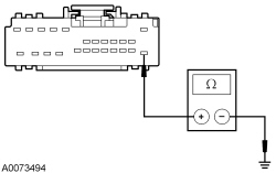 - Measure the resistance between the ACM (Audio Control Module) C240A-13, circuit GD114 (BK/BU), harness side and ground.