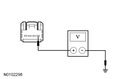 - Measure the voltage between the FCIM (Front Controls Interface Module) C2402-1, circuit SBP16 (VT/RD), harness side and ground.