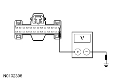 - Measure the voltage between the HVAC module C2357-1 (manual) or C228A-1 (DATC (Dual Automatic Temperature Control)), circuit SBP15 (WH/RD), harness side and ground.