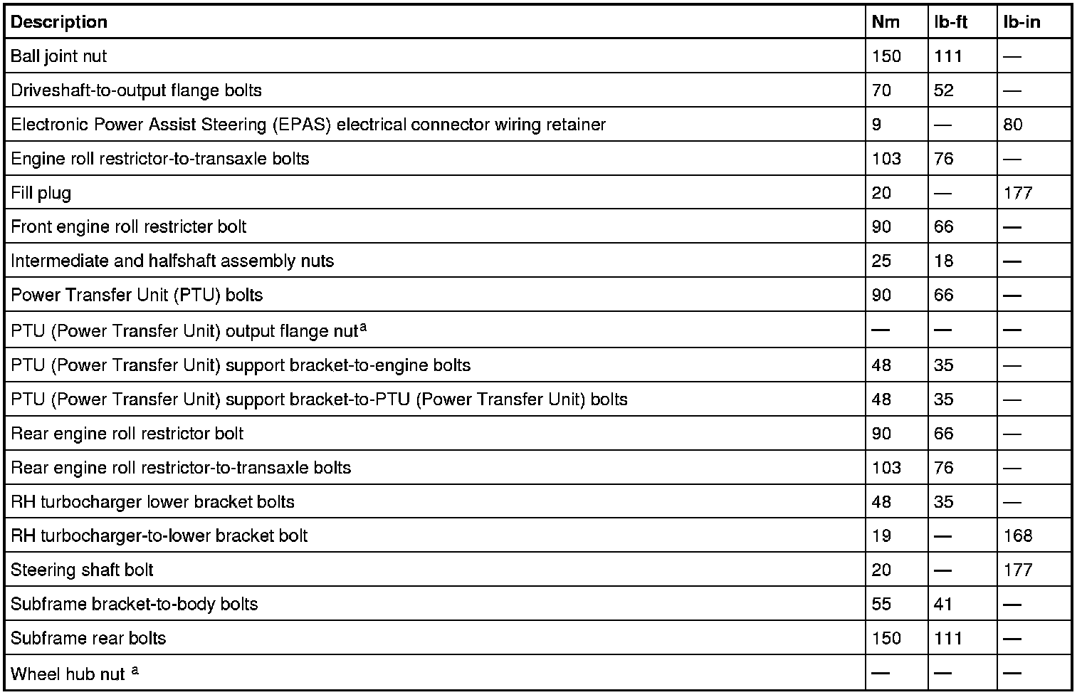 Torque Specifications