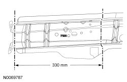 Scribe a cut-line 330 mm (12.99 in) from the front bumper bracket on the outer frame rail. Using a plasma cutter, cut-off wheel or reciprocating saw, cut off the front rail inner and outer assemblies along the scribe line.