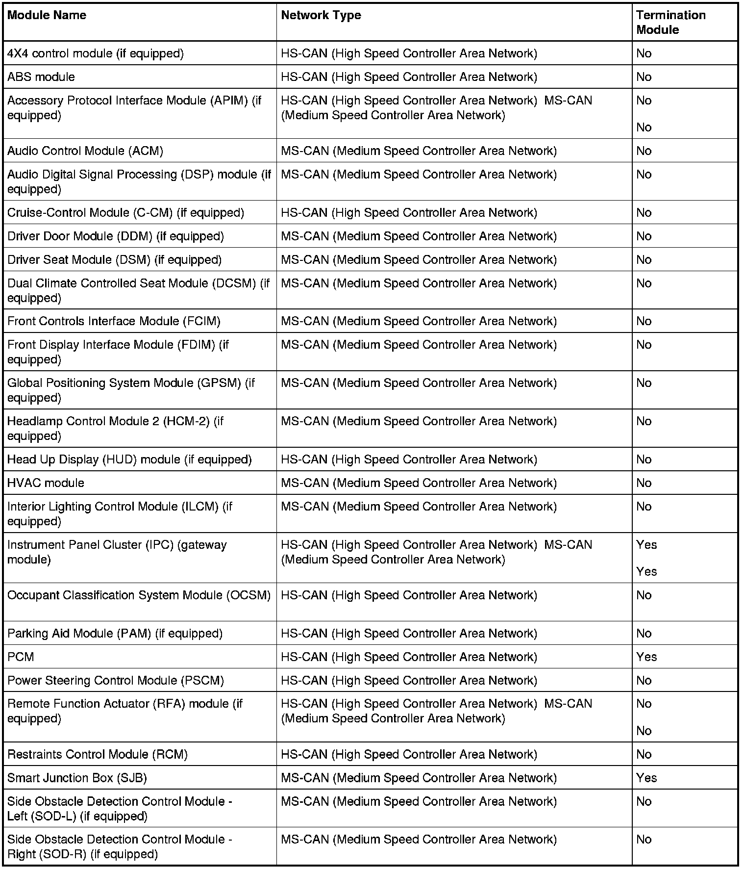 The Instrument Panel Cluster (IPC) is the gateway module, translating messages on the HS-CAN (High Speed Controller Area Network) to the MS-CAN (Medium Speed Controller Area Network) and vice versa. This allows a message to be distributed throughout both networks. The IPC (Instrument Panel Cluster) is the only module on this vehicle that has this ability.