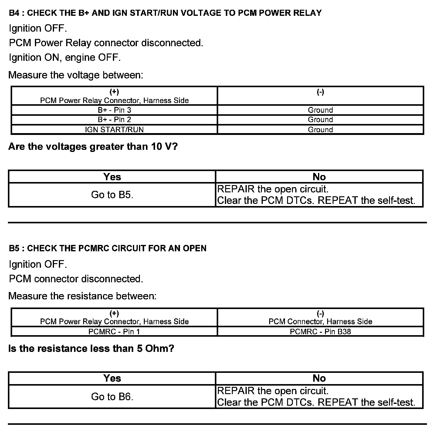Test B: Powertrain Control Module (PCM) Power Relay