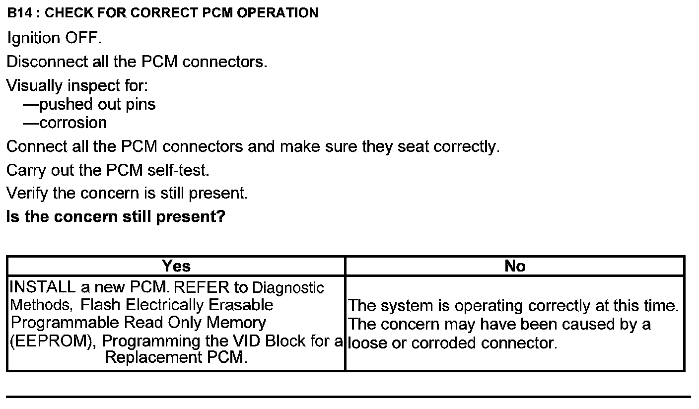 Home >> Ford >> 2012 >> Taurus FWD V6-3.5L >> Repair and Diagnosis >> Powertrain Management >> Computers and Control Systems >> Testing and Inspection >> Pinpoint Tests >> Test B: Powertrain Control Module (PCM) Power Relay