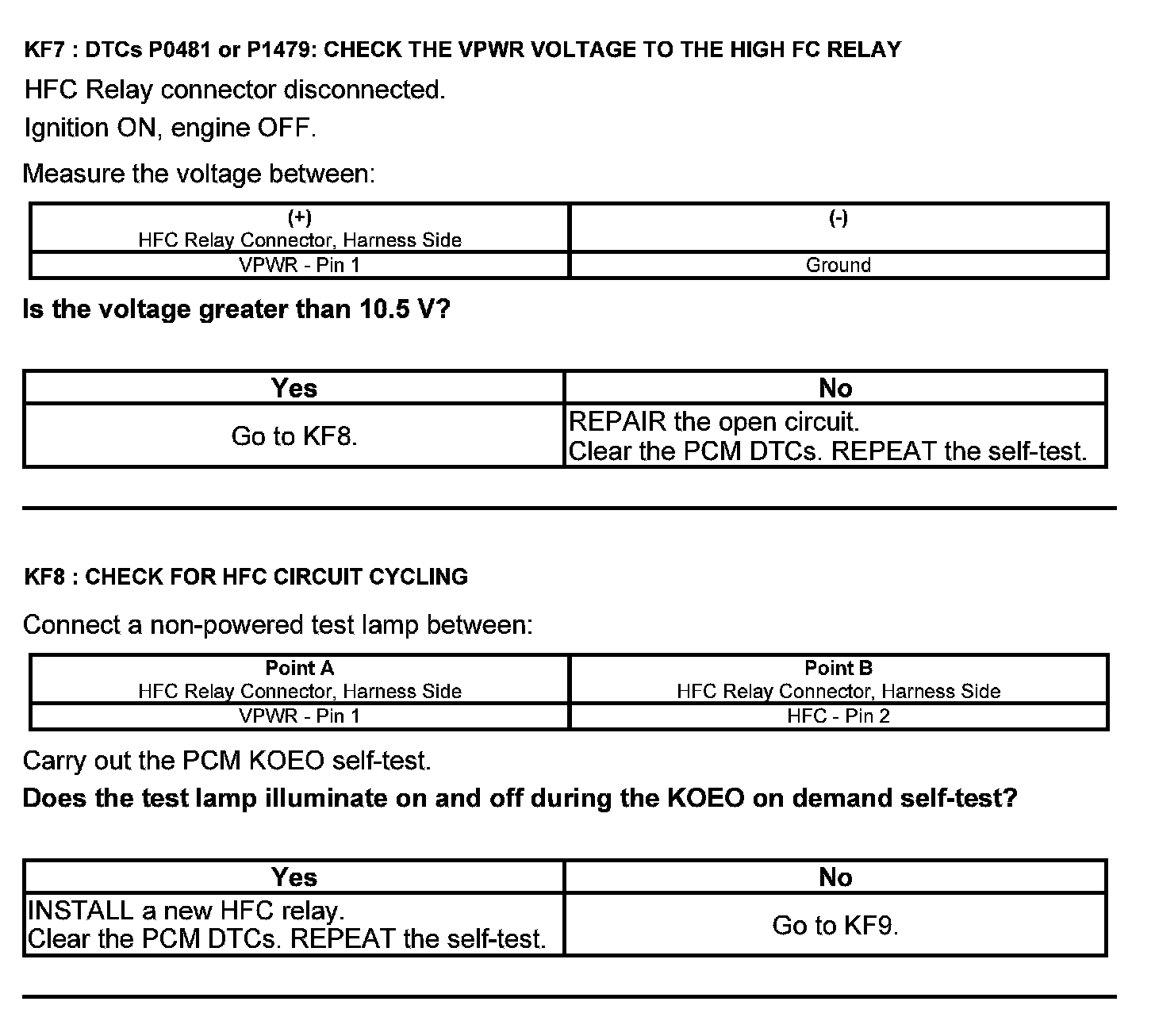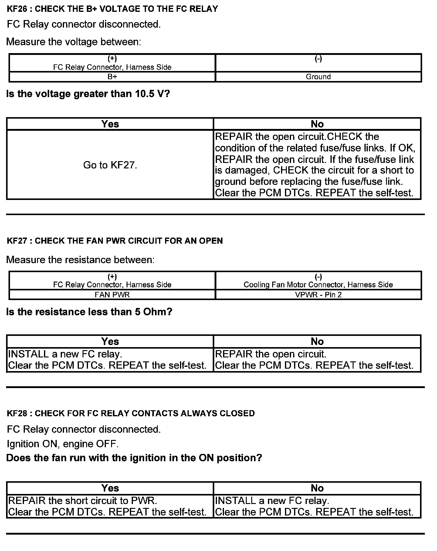 Home >> Ford >> 2012 >> Taurus FWD V6-3.5L >> Repair and Diagnosis >> Powertrain Management >> Computers and Control Systems >> Testing and Inspection >> Pinpoint Tests >> Test KF: Fan Control Relays