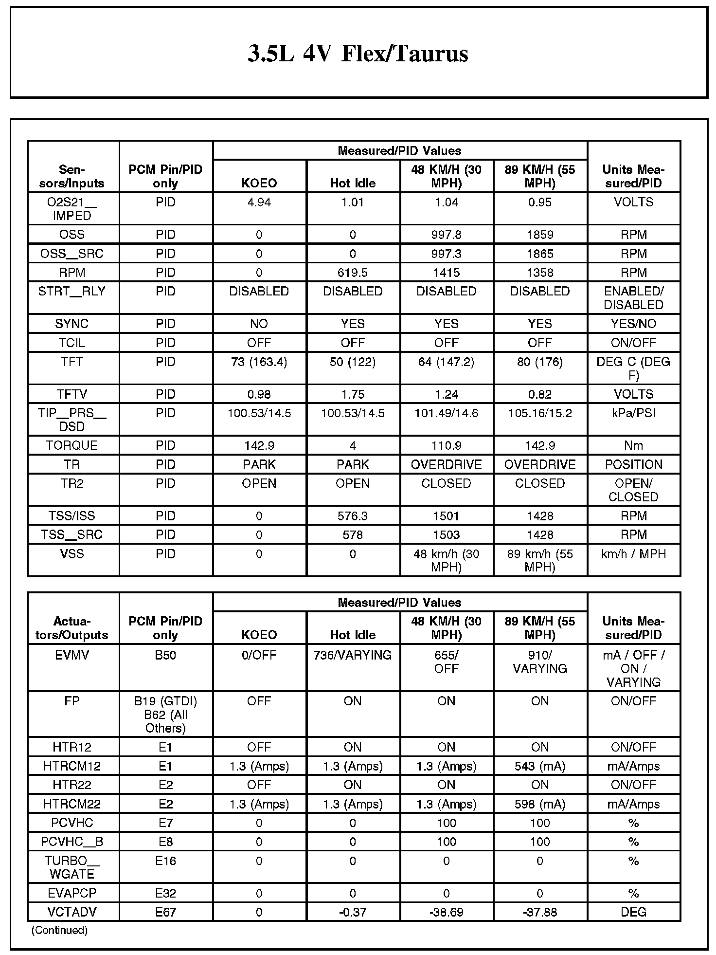 Home >> Ford >> 2012 >> Taurus FWD V6-3.5L >> Repair and Diagnosis >> Powertrain Management >> Computers and Control Systems >> Testing and Inspection >> Scan Tool Testing and Procedures >> Typical Diagnostic Reference Values