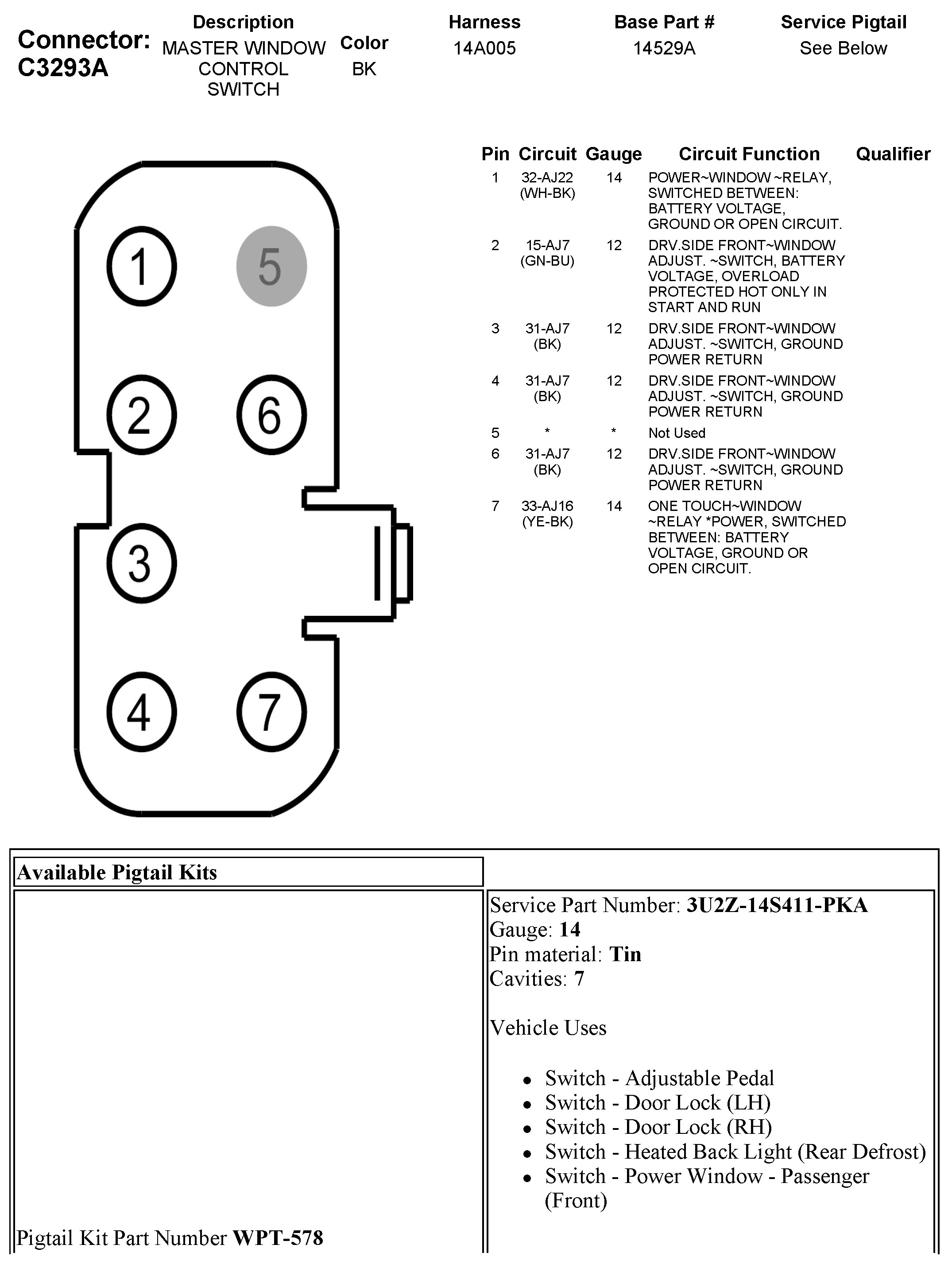 C3293A Master Window Control Switch
