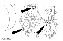 Position the coolant pump and install the 3 bolts.