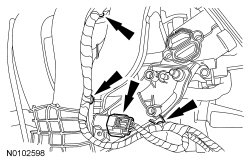 - Attach the 3 wiring harness retainers to the intake manifold.
