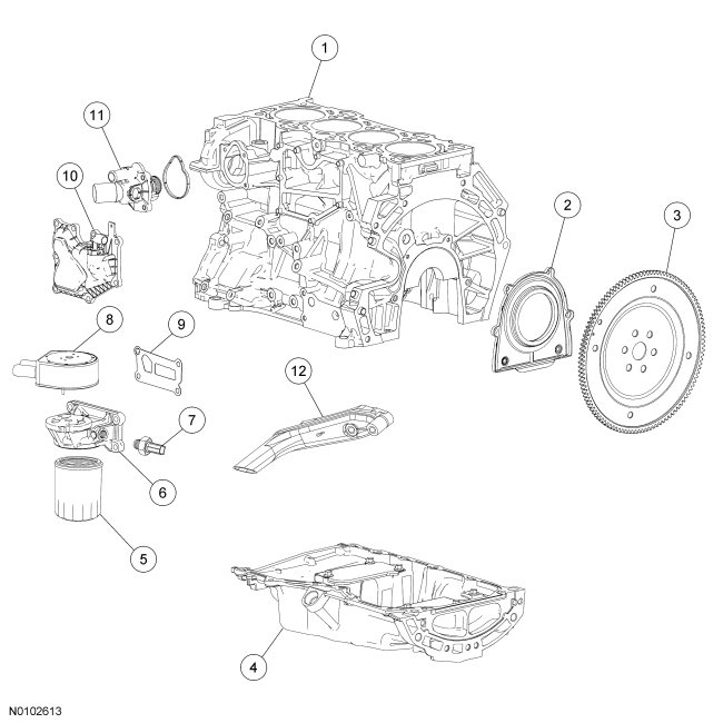 NOTICE: During engine repair procedures, cleanliness is extremely important. All parts must be thoroughly cleaned and any foreign material, including any material created while cleaning gasket surfaces, that enters the oil passages, coolant passages or the oil pan, can cause engine failure.