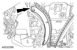 7. Remove the bolts and the LH timing chain guide.