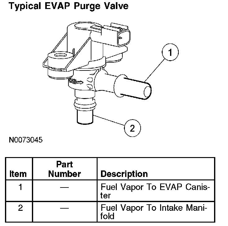 The EVAP purge valve (located near the engine) is part of the enhanced EVAP system controlled by the PCM. This valve controls the flow of vapors (purging) from the EVAP canister to the intake manifold during various engine operating modes. The EVAP purge valve is a normally closed valve. The EVAP purge valve controls the flow of vapors, eliminating the need for an electronic vacuum regulator and vacuum diaphragm. For Flex 3.5L 4V, Fusion 3.5L, MKS 3.7L, MKT 3.7L, MKZ 3.5L, Taurus 3.5L 4V and Transit Connect the PCM outputs a variable current between 0 and 1,000 mA to control the EVAP purge valve. For all others, the PCM outputs a duty cycle between 0% and 100% to control the EVAP purge valve.