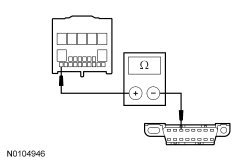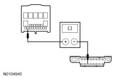 - Measure the resistance between the GEM (Generic Electronic Module) C201D-2, circuit 91-DK20 (BK/RD), harness side and ground.