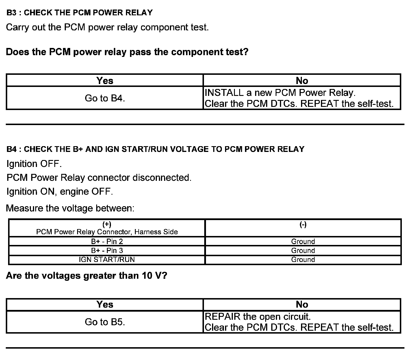 Test B: Powertrain Control Module (PCM) Power Relay