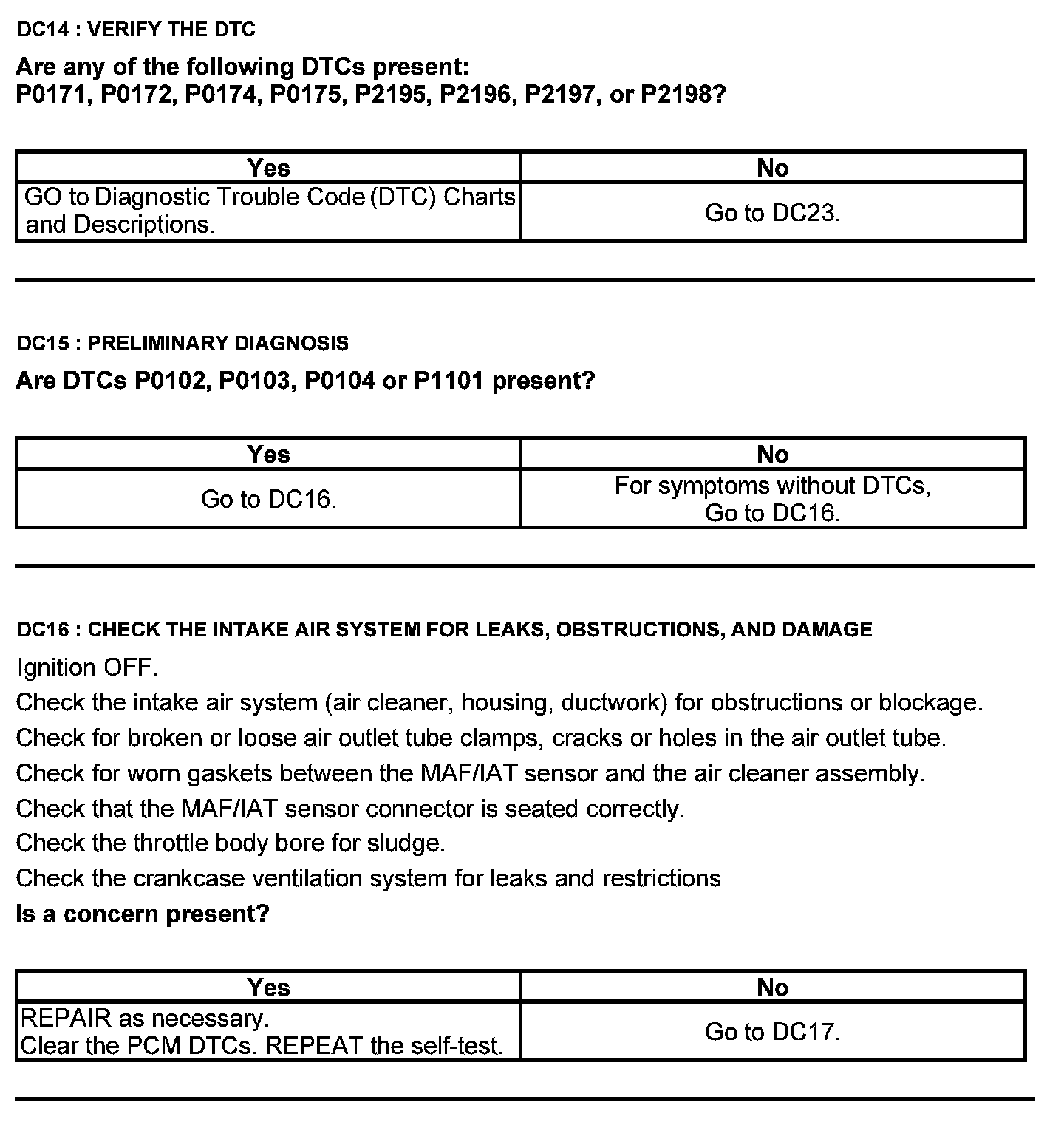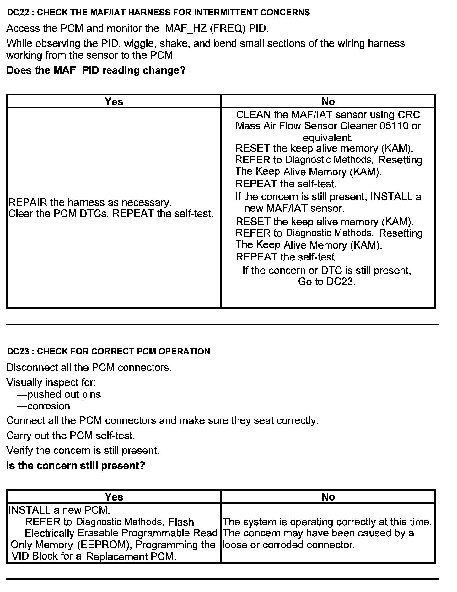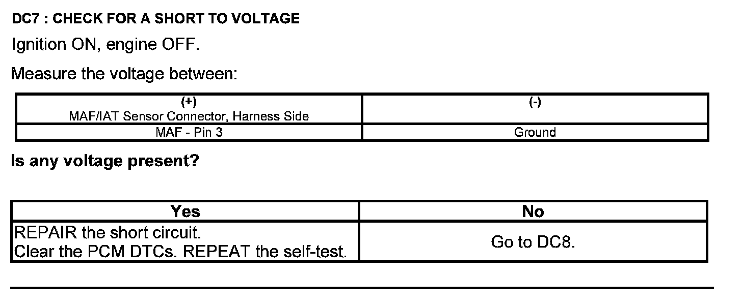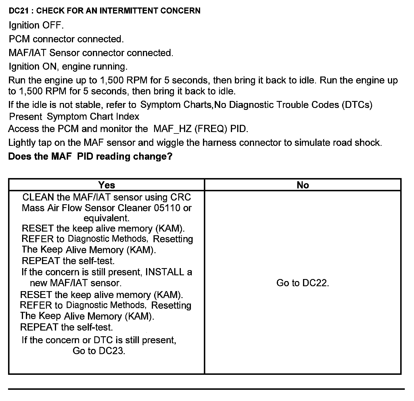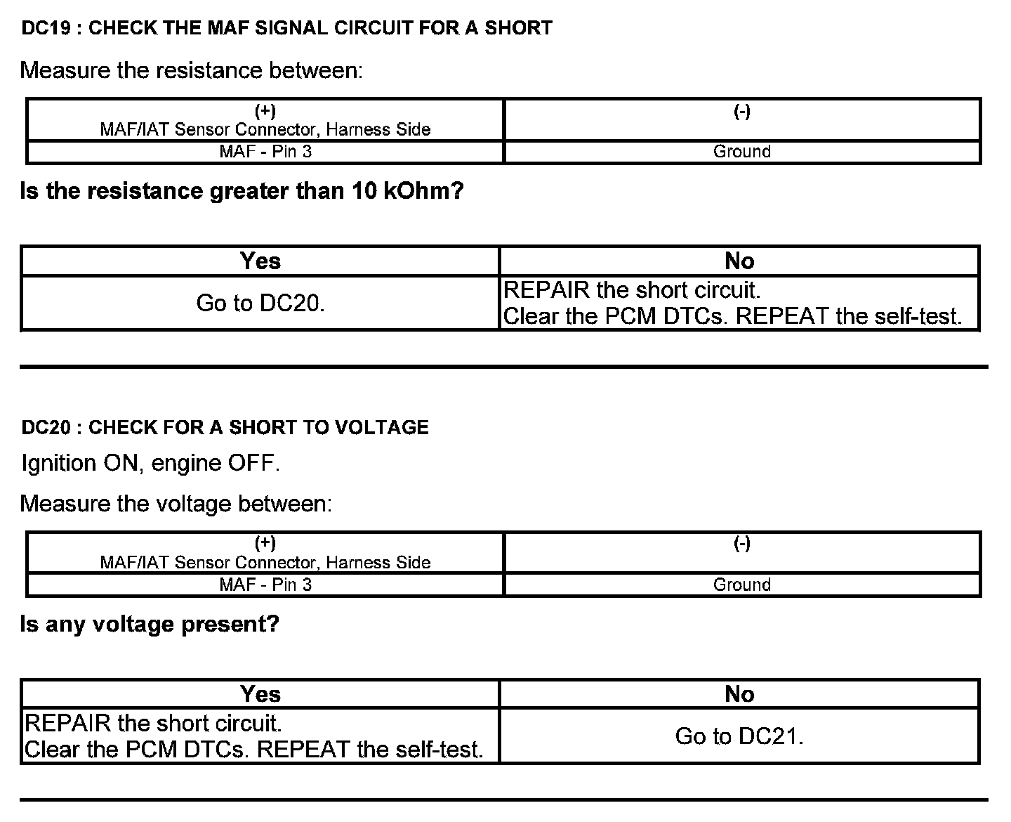 Home >> Ford >> 2012 >> Transit Connect L4-2.0L >> Repair and Diagnosis >> Powertrain Management >> Computers and Control Systems >> Testing and Inspection >> Pinpoint Tests >> Test DC: Mass Airflow (MAF) Sensor