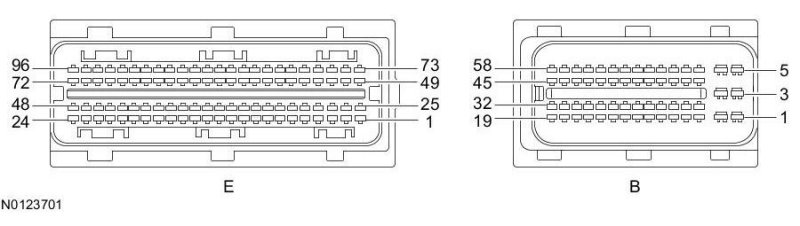 Powertrain Control Module (PCM) Connector - For PCM connector views or reference values, refer to Reference Values.
