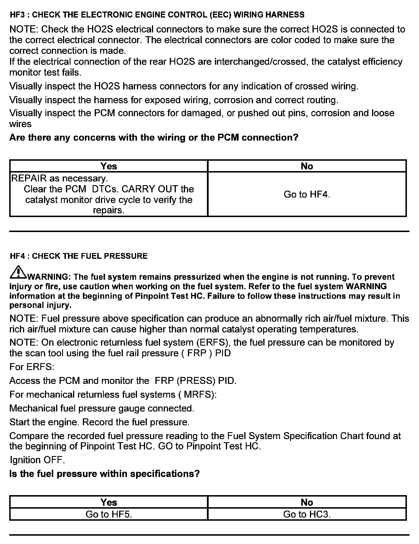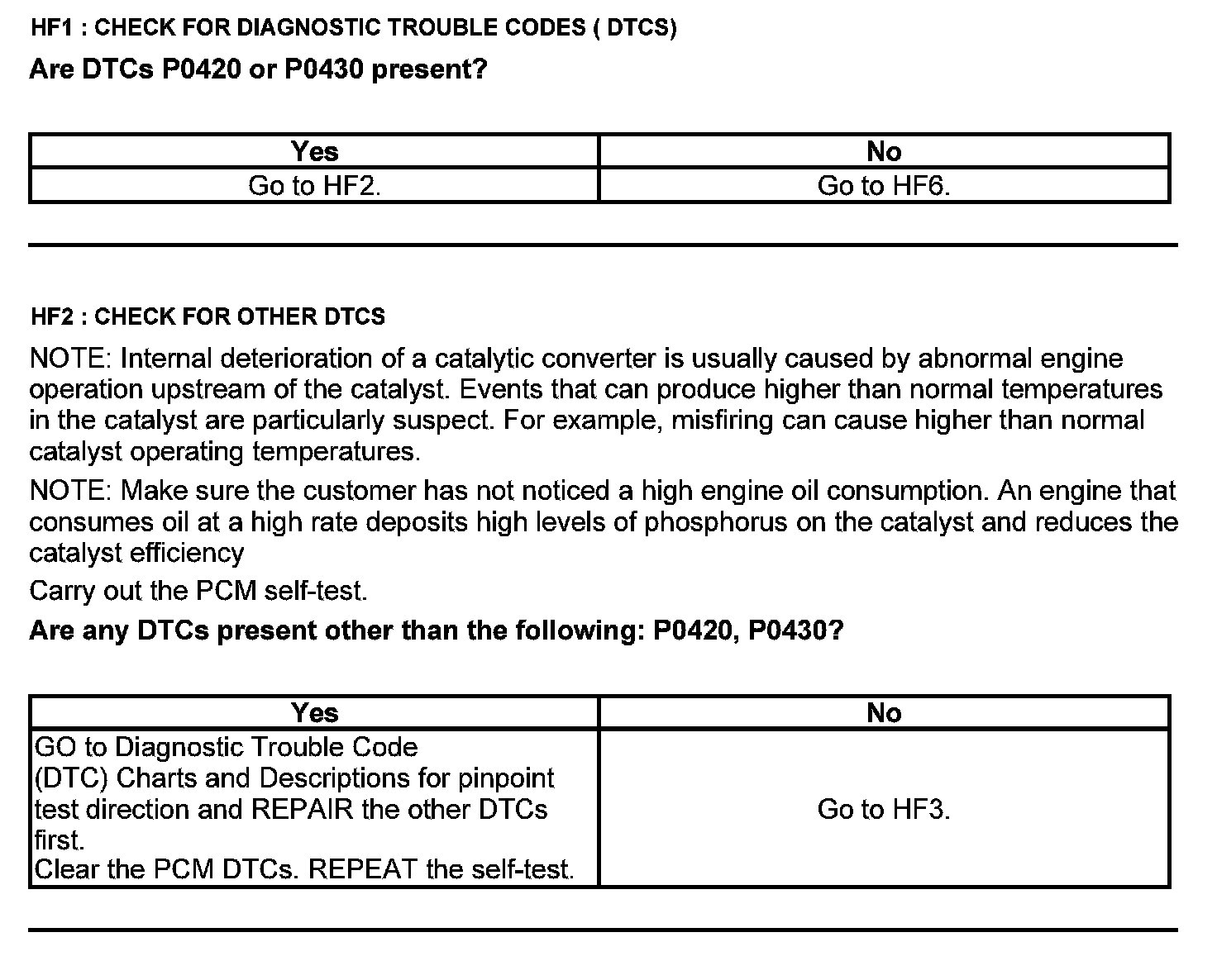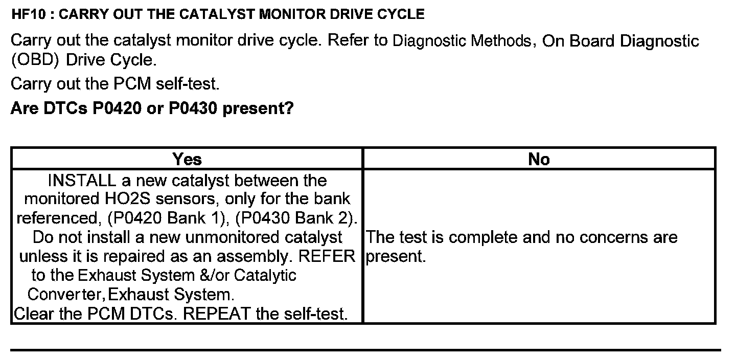 Test HF: Catalyst Efficiency Monitor and Exhaust Systems