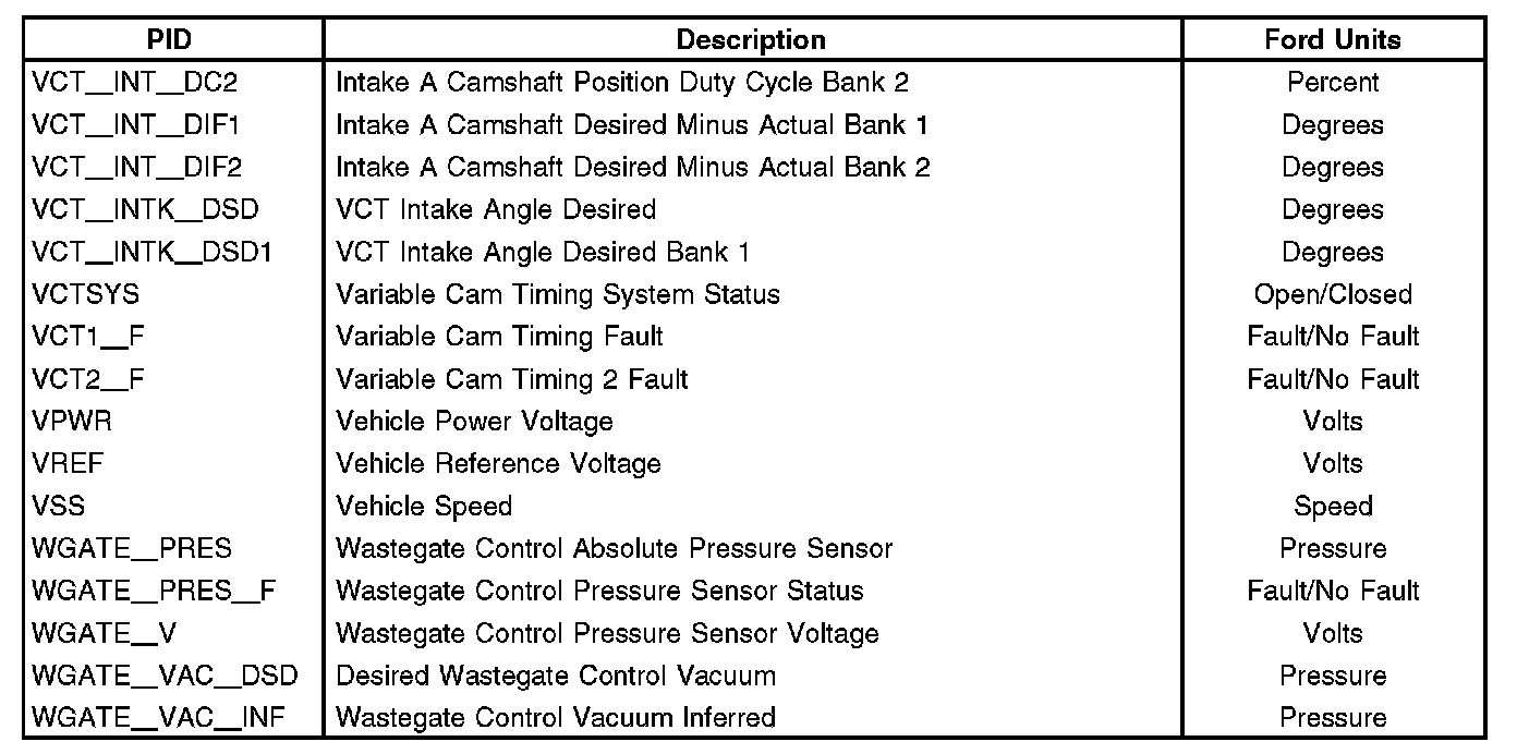 Home >> Ford >> 2012 >> Transit Connect L4-2.0L >> Repair and Diagnosis >> Powertrain Management >> Computers and Control Systems >> Testing and Inspection >> Scan Tool Testing and Procedures >> Parameter Identification (PID)