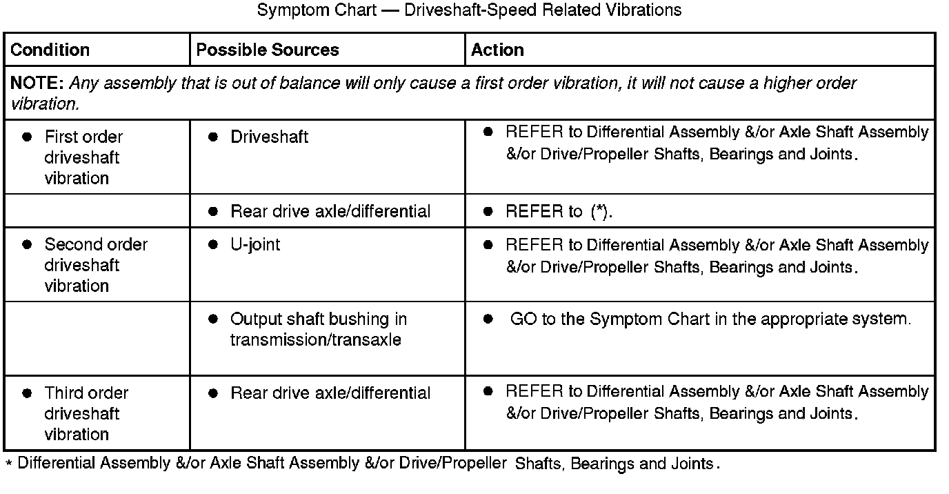 Symptom Chart - Driveshaft-Speed Related Vibrations