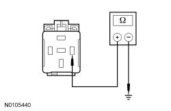 - Measure the resistance between one-touch down relay C546-1, circuit 31-AJ15 (BK), harness side and ground.