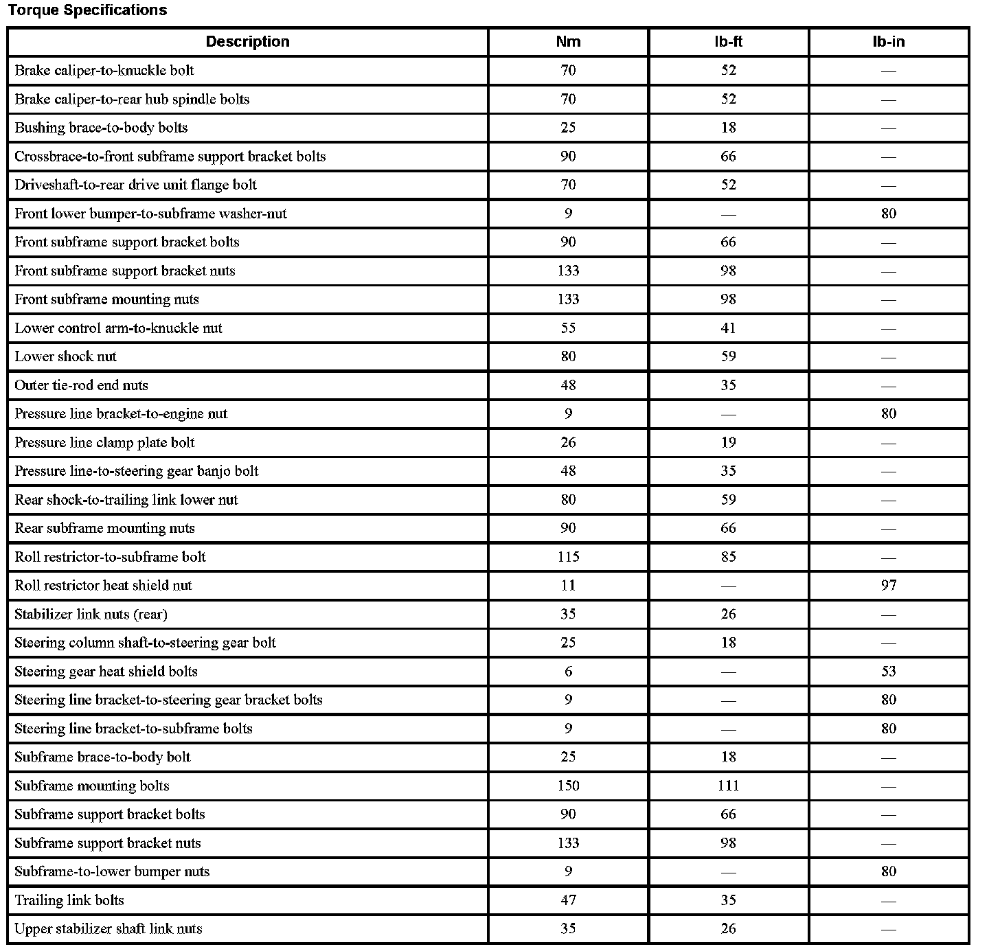 Subframe: Specifications