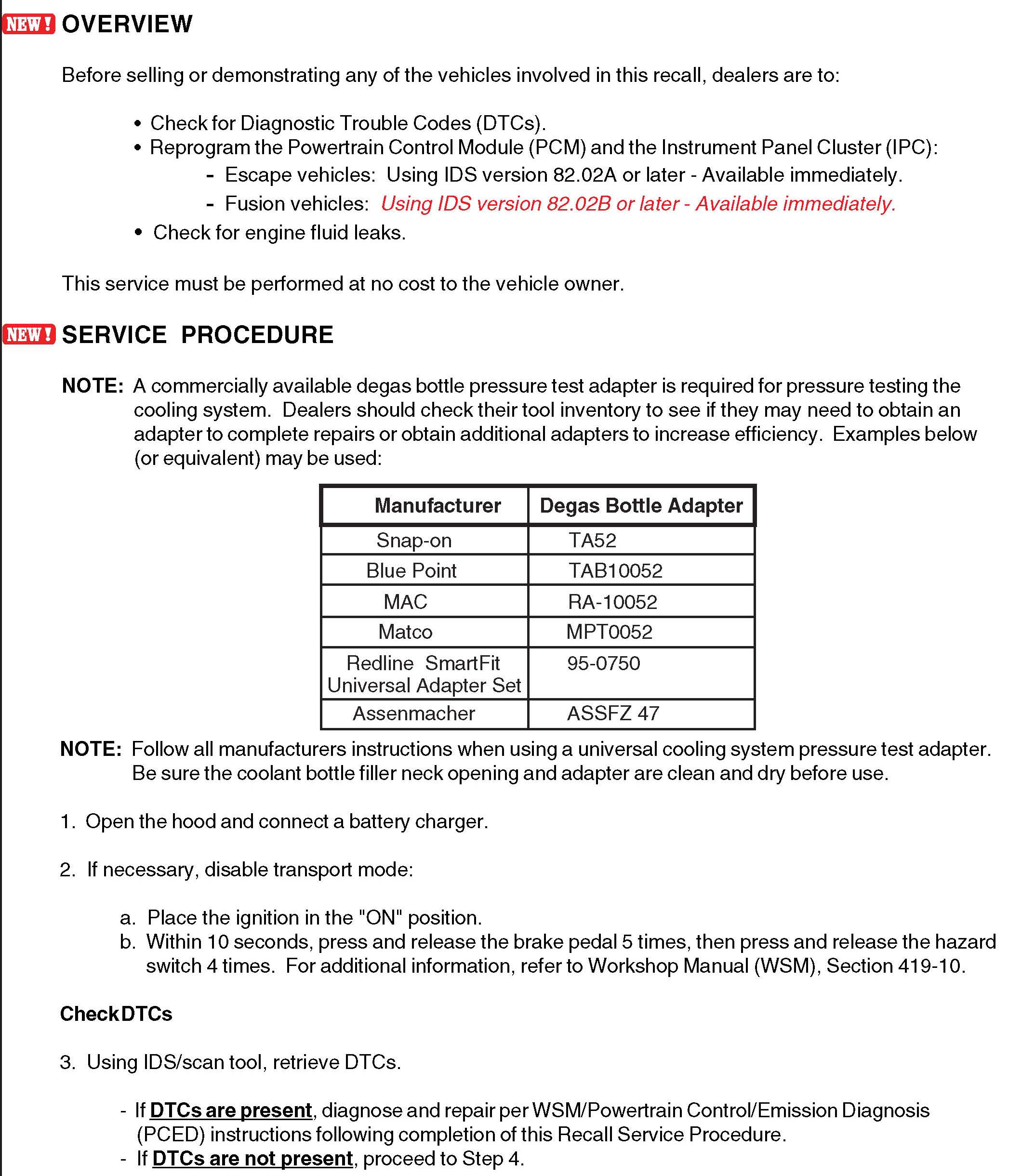 Recall - Engine Overheating, Potential Engine Compartment Fires