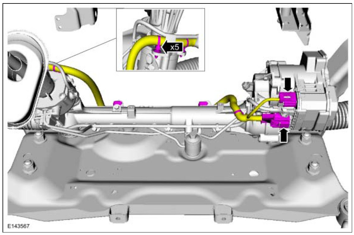 2. NOTICE: Disconnect the battery ground cable anytime the steering gear is being serviced or damage to the steering gear internal power relay may occur resulting in steering gear replacement.