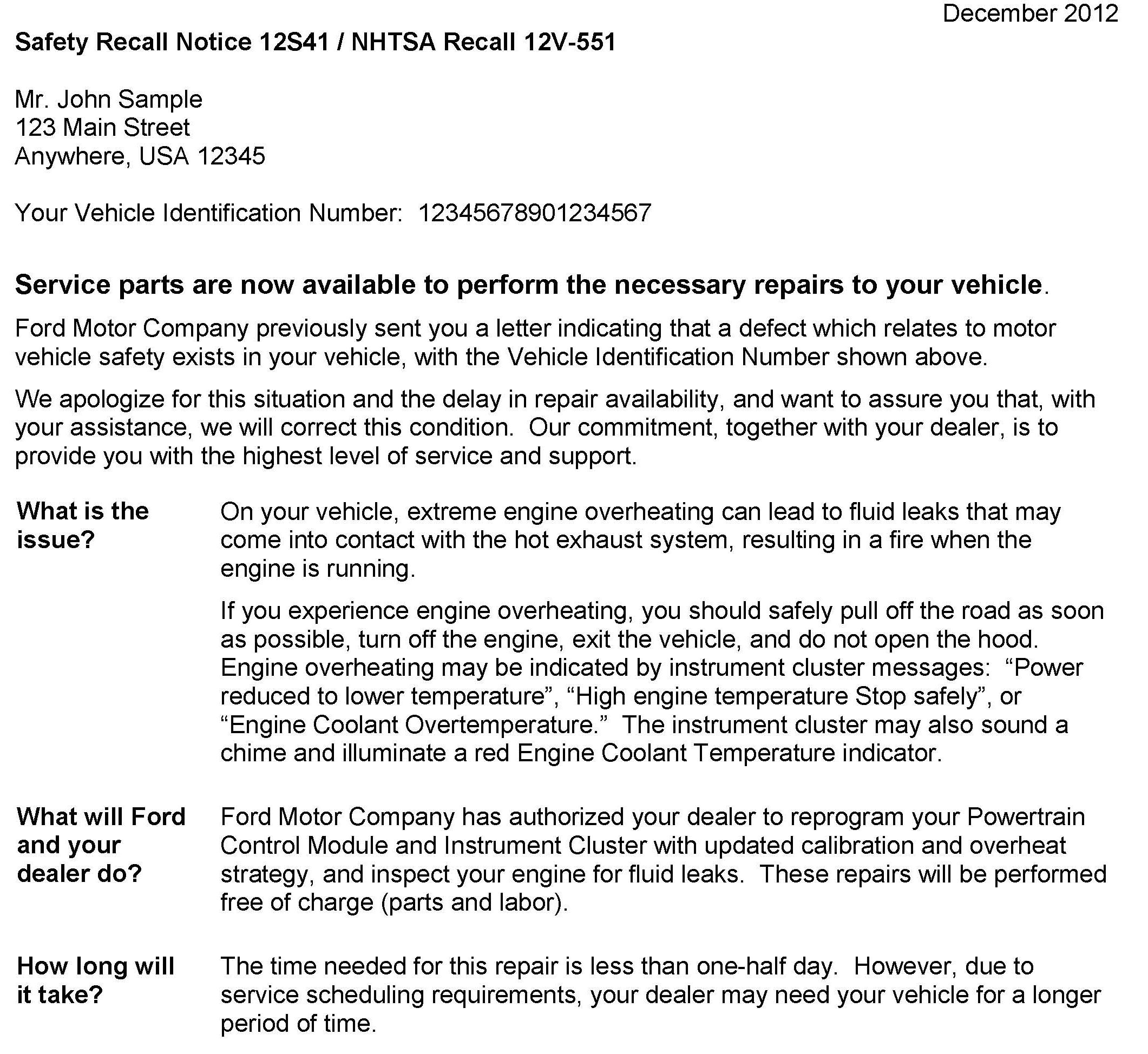 Recall - Engine Overheating, Potential Engine Compartment Fires