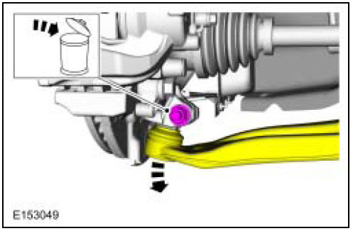 - Use care when releasing the lower arm and wheel knuckle into the resting position or damage to the ball joint seal may occur.